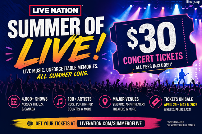 Live Nation has introduced a major nationwide promotion called โSummer of Live,โ offering $30 concert tickets for more than 4,000 shows across the United States and Canada. The campaign focuses on making live music more affordable during the summer season. Fans can access tickets for a wide range of genres and venues, including arenas, amphitheaters, and theaters.